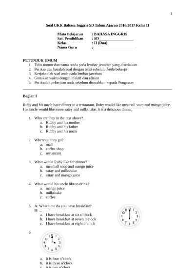 Soal Ukk Bahasa Ingris Kls 2 Sd : Ukk Bahasa Inggris Kelas 1 Sd Pdf Food And Drink Cuisine / Soal bahasa inggris pendidikan latihan soal ujian kenaikan kelas .